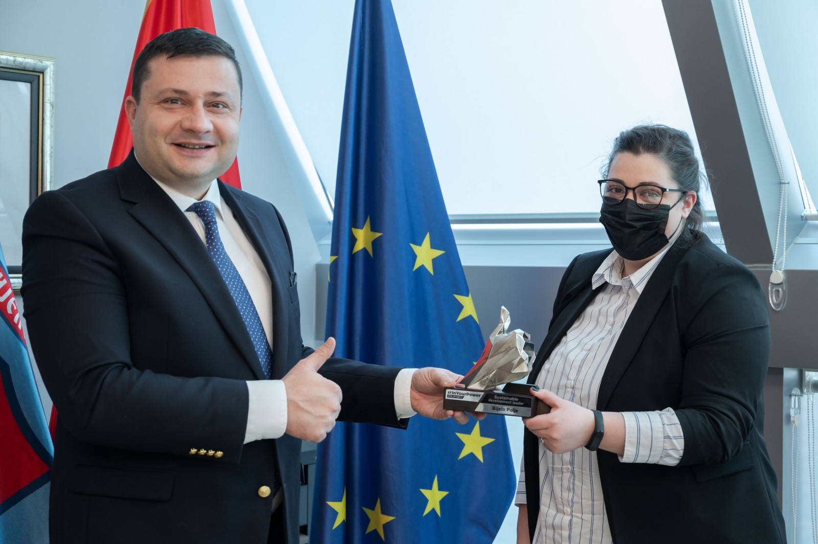 Programska direktorka Sanja Šišović uručila je plaketu #InYourPOWER, predsjedniku Opštine Bijelo Polje Petru Smoloviću, kao jednom od pokretača lokalnih odgovora na HIV/AIDS.